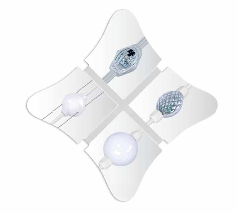 Đèn LED Pixel 3D Crystall Ball là loại đèn đặc biệt, với anh sáng tỏa ra 360 độ. Thích hợp để sử dụng cho các công trình trang trí giữa không gian nhiều góc nhìn như không gian công cộng, trong siêu thị, khách sạn, nhà hàng, trung tâm thương mại để tạo các hiệu ứng trang trí đẹp mắt, có thể nhìn thấy ở tất các các góc nhìn không giới hạn. Đèn có vỏ nhựa hoặc vỏ làm bằng pha lê trong suốt. Đèn có nhiều hình dạng, tròn, elips, IP67 chống nước, lắp đặt dễ dàng, tuổi thọ cao.