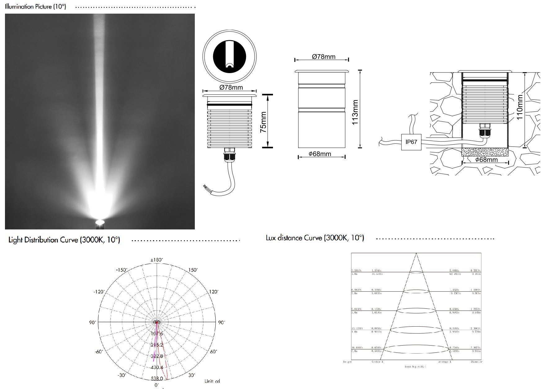 | Kích thước đèn | ∅78×75 mm |
