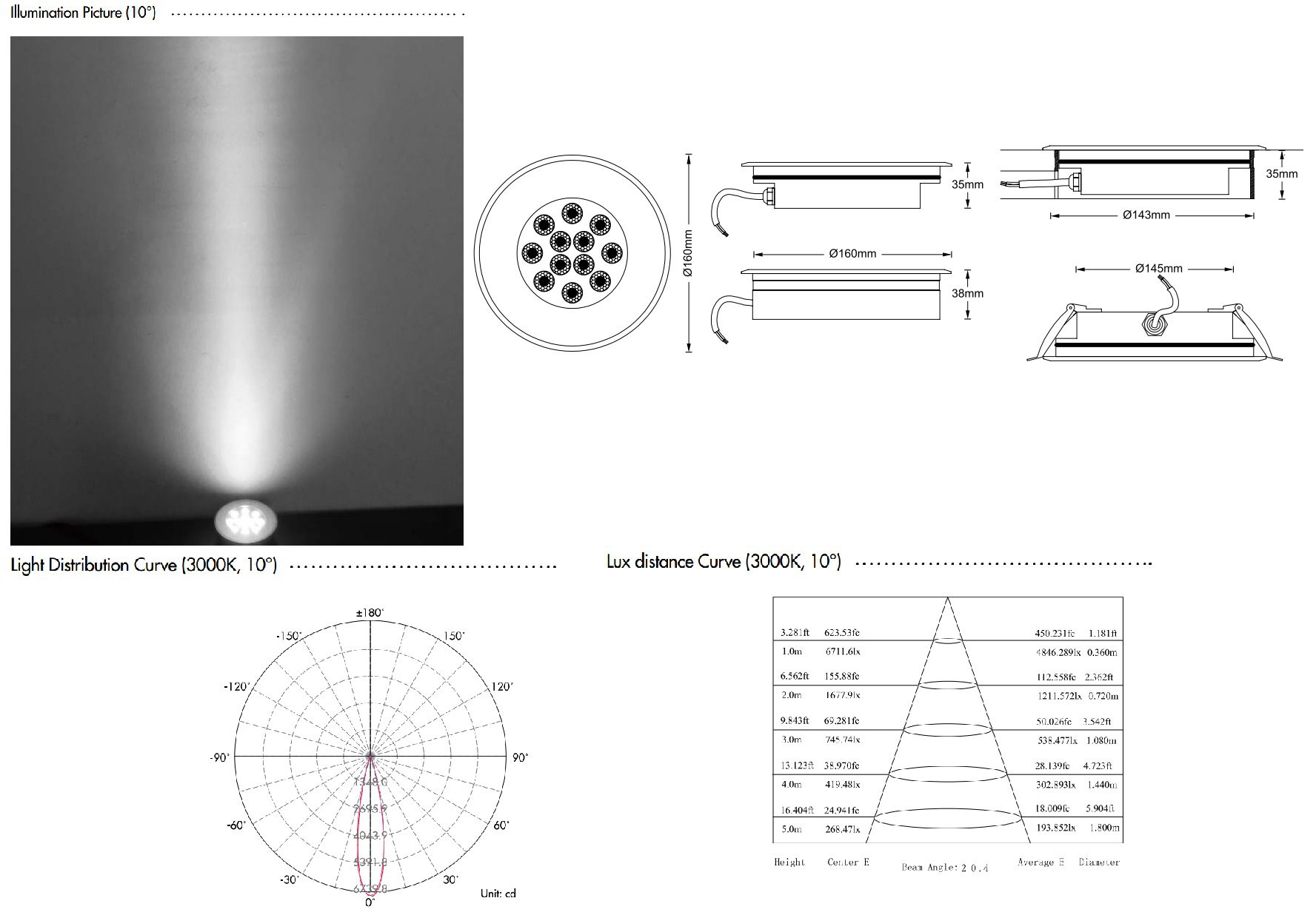Bảng thông số kỹ thuật đèn âm đất 15W: