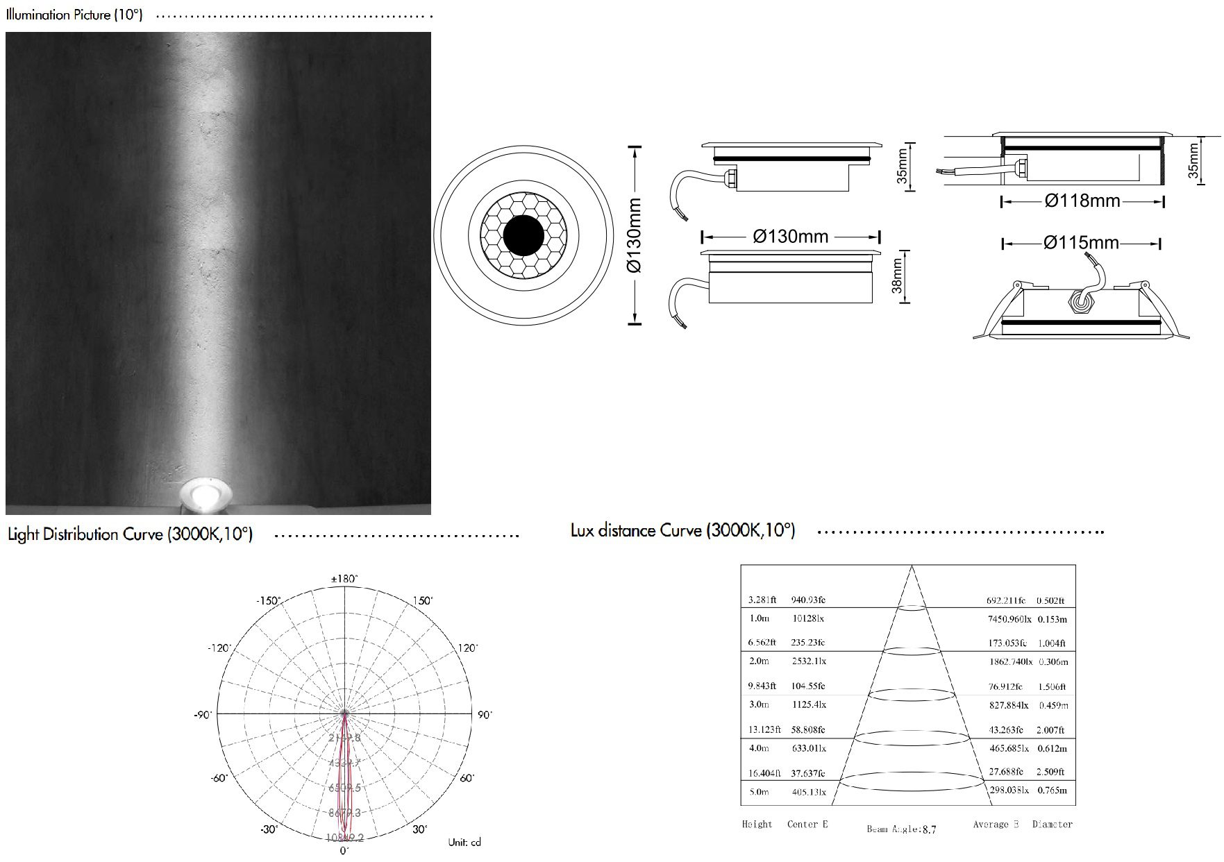 | Kích thước đèn | ∅130×35 mm |