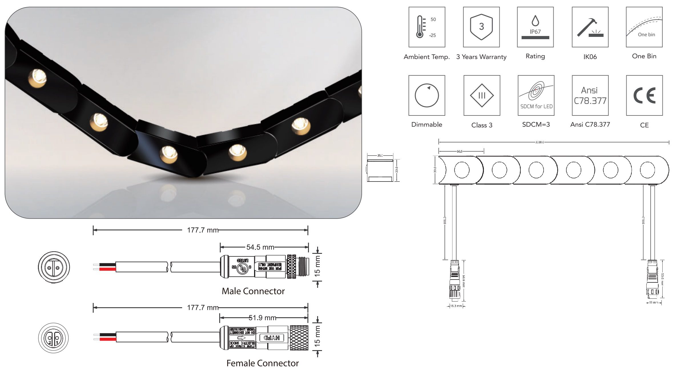 - Thiết kế linh hoạt: Khả năng uốn cong đến 30 độ cho phép lắp đặt ở các không gian có độ cong hoặc góc cạnh mà vẫn đảm bảo ánh sáng phân bố đều.